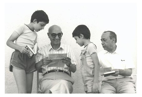 Bufalino con Sciascia e i suoi nipoti, 1983